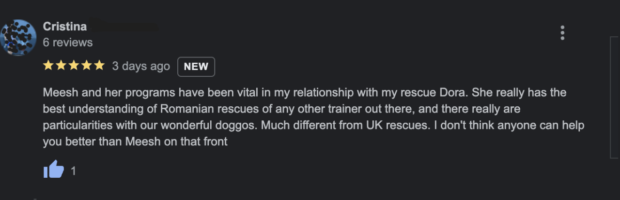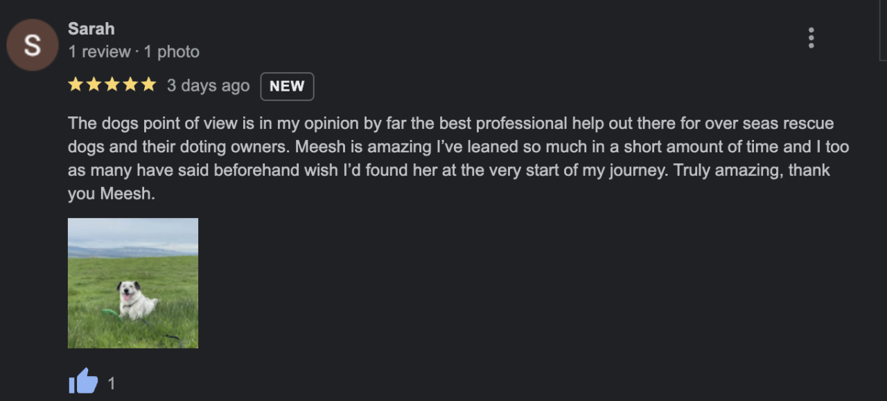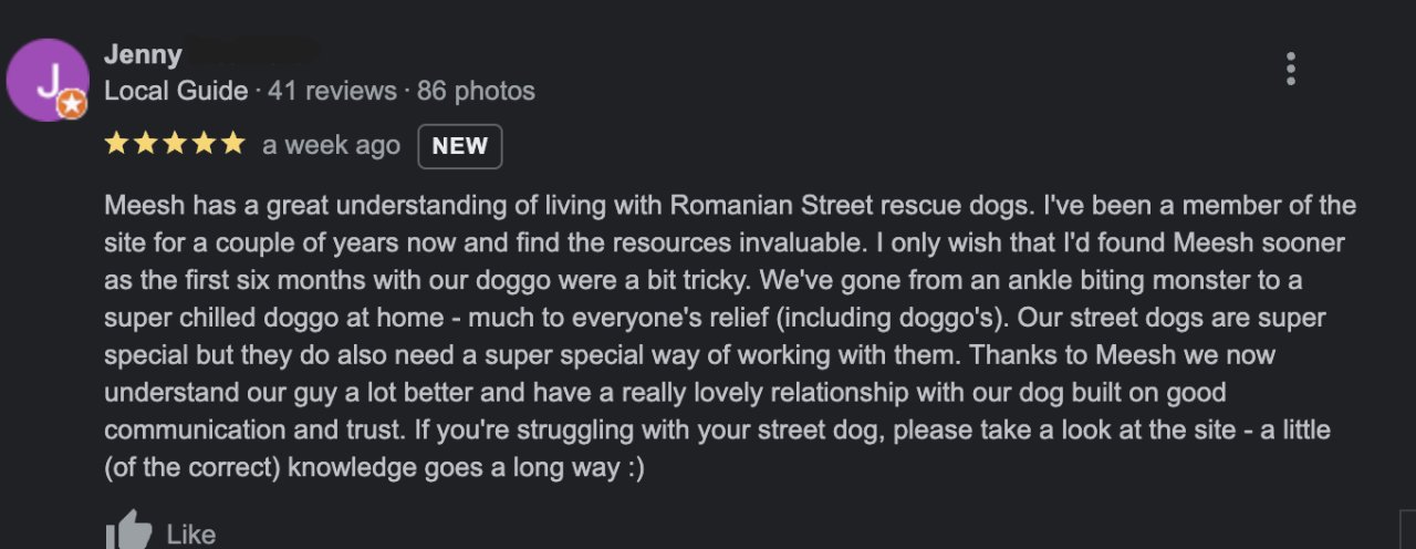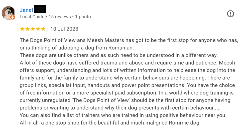Hi, my name is Meesh Masters, and I am the founder of The Dog’s Point of View and a leading specialist in Romanian and overseas rescue dogs.